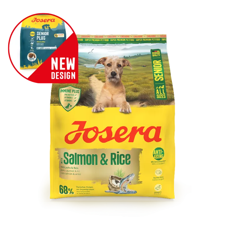 Für die älteren Semester auf vier Pfoten haben wir unser Josera Senior Salmon & Rice im Sortiment: Die Rezeptur des Hundefutters für Senioren wurde speziell auf die Bedürfnisse älterer Hunde zugeschnitten. Es ist fettreduziert und kann Übergewicht vorbeugen. Gleichzeitig entlastet ein reduzierter Eiweiß- und Mineralstoffgehalt die Organe.
