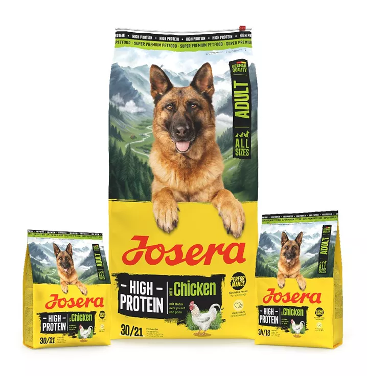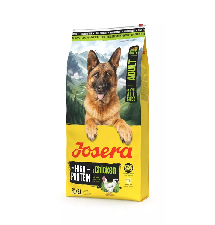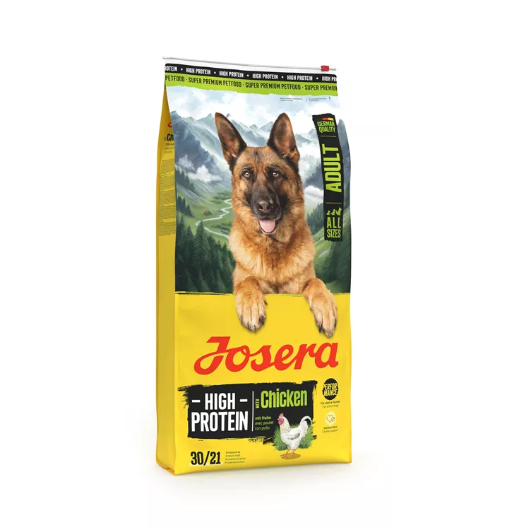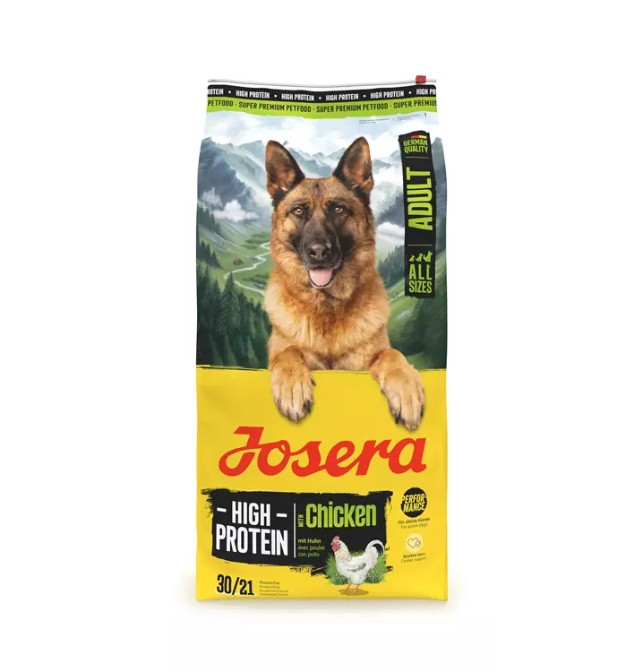 Proteinreich, energiereich, gut verträglich und schmackhaft – das ist unser Josera High Protein Chicken! Das glutenfreie Hundefutter wurde speziell für sehr aktive Vierbeiner konzipiert und bringt einen hohen Anteil an wertvollen Proteinen mit. Es ist ideal für alle, die im Hundesport aktiv sind oder als Arbeits- oder Zuchthunde eingesetzt werden und tagtäglich hohe Leistung erbringen.