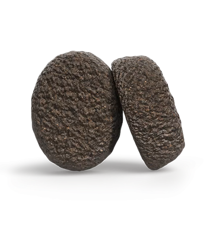 Die große Krokette ist besonders abgestimmt auf große Rassen. Dadurch wird das bewusste Zerkauen gefördert und damit hastigem Fressen vorgebeugt.