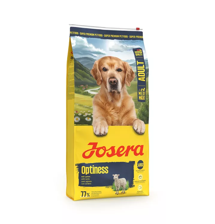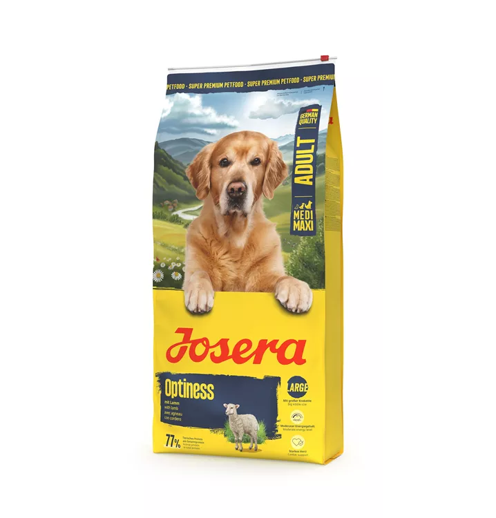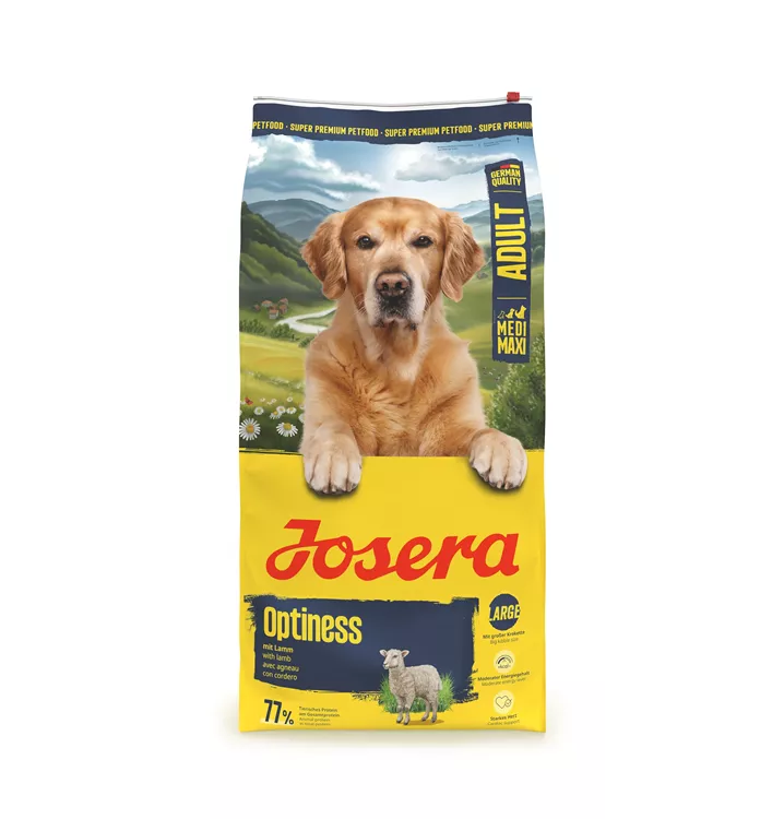 Große Pfoten und viel Anspruch? Wählerische, große Hunde werden Josera Optiness lieben – und außerdem mit allem versorgt, was sie brauchen. Das Hundefutter mit besonders gut verträglichem Lamm und Reis ist eine schonende Kost ohne Weizen, Soja und Mais. Dank des moderaten Energiegehalts ist es perfekt auf die Bedürfnisse normal aktiver, größerer Hunde zugeschnitten.