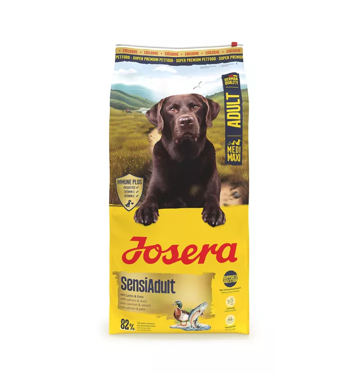 Flohsamenschalen unterstützen zudem die Darmflora, während der abgestimmte Ballaststoffkomplex die Verdauung reguliert. SensiAdult ist also die optimale Schonkost. Unser Josera IMMUNE PLUS kann das intakte Immunsystem Deines Vierbeiners zusätzlich unterstützen.