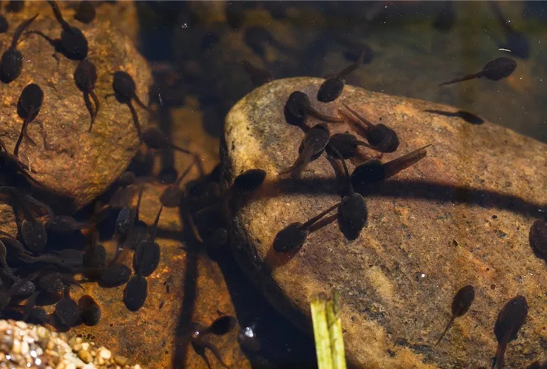 Wer an lauen Sommerabenden ein Quaken aus Richtung des Gartenteiches wahrnimmt, kann sich über neue Mitbewohner freuen. Frösche und Kröten nutzen den Gartenteich gerne zur Ablage ihres Laichs und ernähren sich von Insekten und Schädlingen. Mücken und Mückenlarven stehen ganz oben auf ihrem Speiseplan. Auch Schnecken im Wasser sind eine echte Bereicherung. Die gibt es im Fachhandel zu kaufen und erst einmal eingezogen, sind sie wahre Algenmäher. Sie ernähren sich von den Algen und verbessern damit die Wasserqualität. Wer sich für einige Zeit ruhig an den Teich im Garten setzen kann, der kann mit viel Glück Molche beobachten. Die Tiere sind sehr scheu und nur schwer zu finden. Daher ist bei der Teichreinigung besondere Vorsicht geboten.