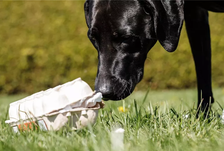 Noch einfacher kann man einen Eierkarton zur neuen Lieblingsbeschäftigung des Hundes erklären. Dazu wird benötigt: