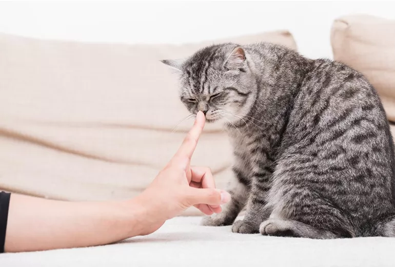 Um Kratz-Unfälle zu vermeiden, müssen Kinder die Körpersprache kennen. Fauchen, ein Buckel, ein aufgeplusterter Schwanz? Das Kind sollte sich fernhalten! Weil sich Kratzer und Bisse kaum vermeiden lassen, sollte immer ein Desinfektionsspray im Haus vorrätig sein, am besten eines, das bei der Anwendung nicht brennt. Auch indem die gründliche Reinigung der Hände nach dem Spielen mit der Katze und vor dem Essen zur Routine wird, können Infektionen vermieden werden. Wenn das Kind die einfachen Regeln beherzigt, kann mit dieser Katzen-Knigge ein liebevolles Zusammenleben gelingen!