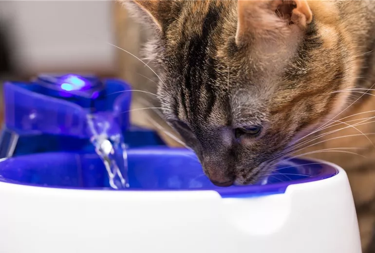 Flüssigkeit nehmen Katzen und Hunde in der Regel hauptsächlich über das Nassfutter auf. Hin und wieder benötigen sie aber auch einen Schluck mehr. Deshalb sollte ihnen immer der Zugang zu einer Wasserstelle offen sein. Ein Trinkbrunnen kann dabei von Vorteil sein.