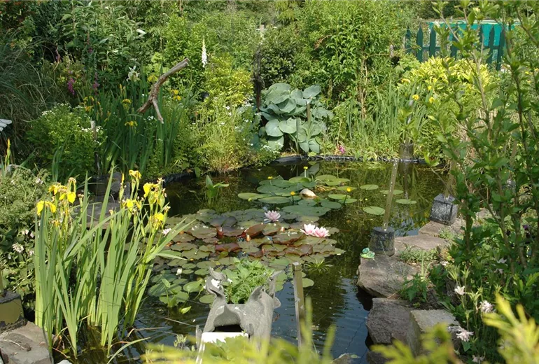 Ein Naturteich bietet jede Menge fürs Auge. Heimische Wasserpflanzen und Teichbewohner fühlen sich an einem Naturteich besonders wohl und verweilen dann gerne für längere Zeit an einer Stelle. Und obwohl der Teich völlig ohne Technik auskommt, kommt er mit sehr wenig Pflege aus. Die richtigen Wasserpflanzen sorgen dafür, dass das biologische Gleichgewicht gehalten wird und der Teich nicht umkippt. Und auch wenn der Naturteich nach dem Anlegen eher trüb aussieht und so gar nicht der Vorstellung entspricht: Algen und andere Ablagerungen erledigen sich mit der Zeit wie von selbst. Zusätzliche Pflege benötigt der Naturteich nur dann, wenn die Pflanzen zu groß werden und geschnitten oder ausgedünnt werden müssen. Aber egal wie viel geplant wird: die Natur wird den Naturteich immer wieder neugestalten. Und das macht ihn so spannend.