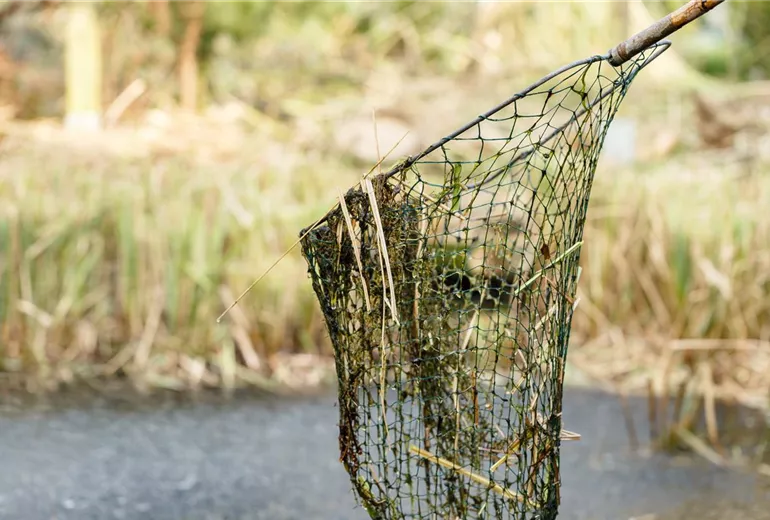 Auch bei Seerose und Co. werden einmal Blätter welk und sterben ab. Sind diese erst einmal welk, sinken sie zu Boden. Aus dem Auge, aus dem Sinn. Am Grund des Gartenteiches fangen sie dann an zu faulen und gefährden das ökologische Gleichgewicht. Damit das gar nicht erst passiert, sollten welkende Blätter regelmäßig abgeschnitten werden, bevor sie unter die Wasseroberfläche sinken. Pflanzen, die sich zu stark ausbreiten, sollten ausgedünnt werden, damit die Vegetation im Gartenteich nicht die Überhand gewinnt. Und für den anderen Schmutz im Teich gibt es den guten alten Kescher, der die Teichfilter bei der Reinigung des Gartenteiches unterstützt. Damit können grobe Verschmutzungen und oberflächliche Algen regelmäßig entfernt werden.